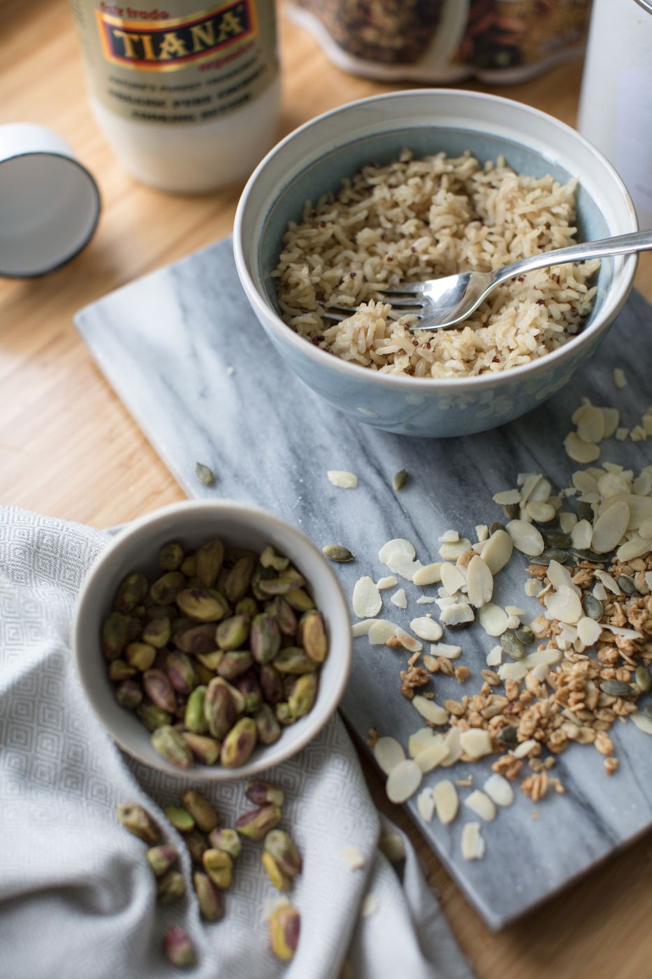 Right – onto the good stuff. I feel like a big snooze mentioning the Tiana Coconut Oil again, but this stuff really is incredible and I use it all the time in cooking and baking (side note: this has no coconut scent!). It’s also great in energy ball recipes, which is why I always keep a good amount of nuts and seeds in my cupboards too. I’m rather fond of pistachios and pumpkin seeds and tend to add these to whatever granola I’m using or just sprinkle them on top of yogurt for a snack. Speaking of granola, I like to have some on hand to dip into whenever I fancy something sweet. The Lizi’s ones are great – pecan and treacle? HELLO.