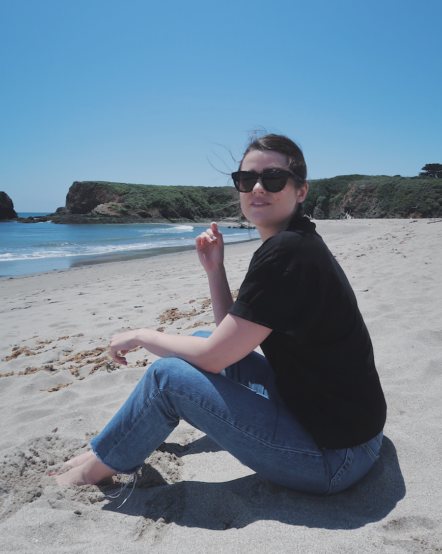 Wearing black to the beach. Standard.