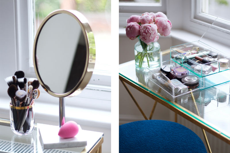 I haven’t really had a beauty set-up since our old flat where I had that IKEA big-ass drawer number. Remember that? Unfortunately it was a little large for our new bedroom and ever since we moved I’ve been keeping my everyday makeup in a bag stuffed into a drawer and then emptying it out on the floor whenever I wanted to apply it. Great for when I want to do my makeup in my pants and nothing else as the neighbours can’t see in, but not so fab when it comes to ease of application/keeping the carpet a foundation-free zone.